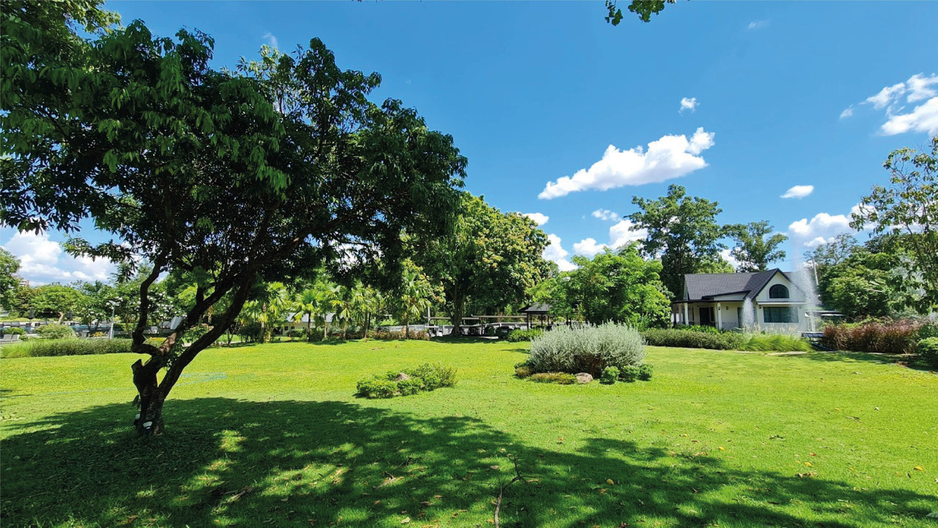 โครงการที่รายล้อมไปด้วยสวนขนาดใหญ่ ที่มีวิวด้านหลังเป็นวิวของดอยสุเทพ
